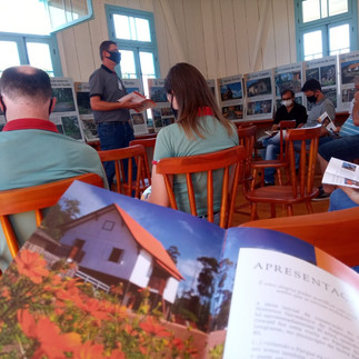 Seguimos divulgando as ações de democratização de acesso do produto pesquisa realizadas por meio de acesso gratuito a palestras com o tema “Pesquisa e comunicação dos acervos do Centro Histórico Germânico” e exposição dos painéis explicativos, viabilizadas para estudantes, professores, idosos e a comunidade local e regional nos seguintes locais: Centro Histórico Germânico, Escola Municipal Padre Nicolau Governeuer de São Carlos/SC, Grupo de Idosos Sempre Alegres de Linha Aguinhas, São Carlos/SC, Grupo de Idosos Tia Lá, Lá de São Carlos/SC, Casa da Cultura de São Carlos/SC. Na ocasião foi realizada também a distribuição gratuita do catálogo.
